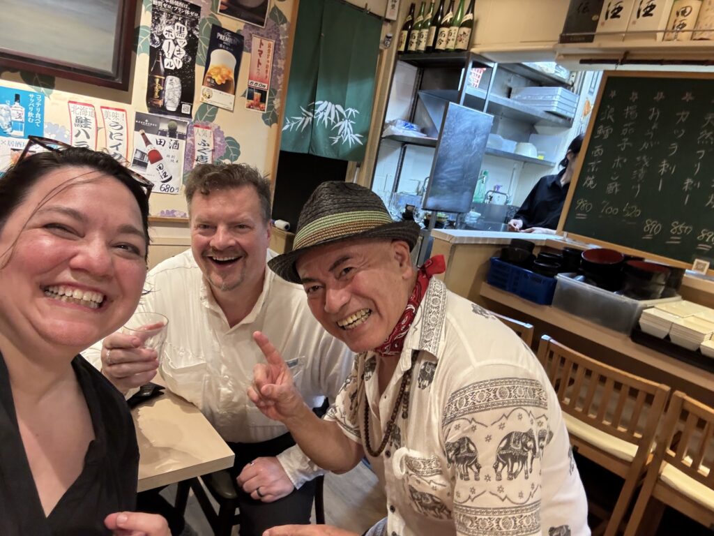 Our first night in Tokyo, in a local izakaya (like a British pub). Our new friend is Katsu. He had no English, but we understood each other perfectly.